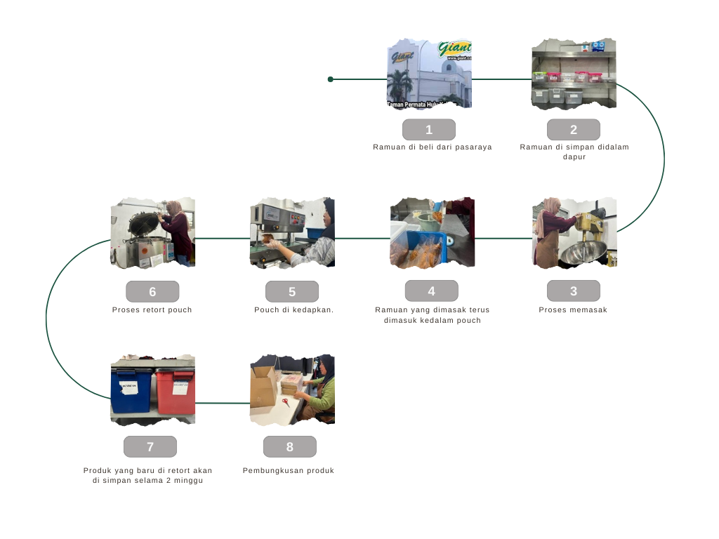 Kami menyediakan perkhidmatan pengeluaran makanan sedia makan dalam kuantiti besar, bermula daripada penyediaan ramuan sehingga proses retort yang memastikan makanan selamat, stabil dan tahan lama.